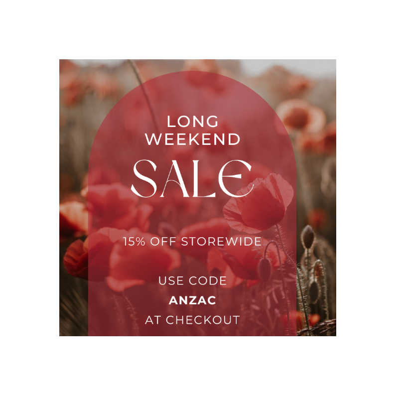 But for ANZAC Weekend, we’re offering 15% off storewide.