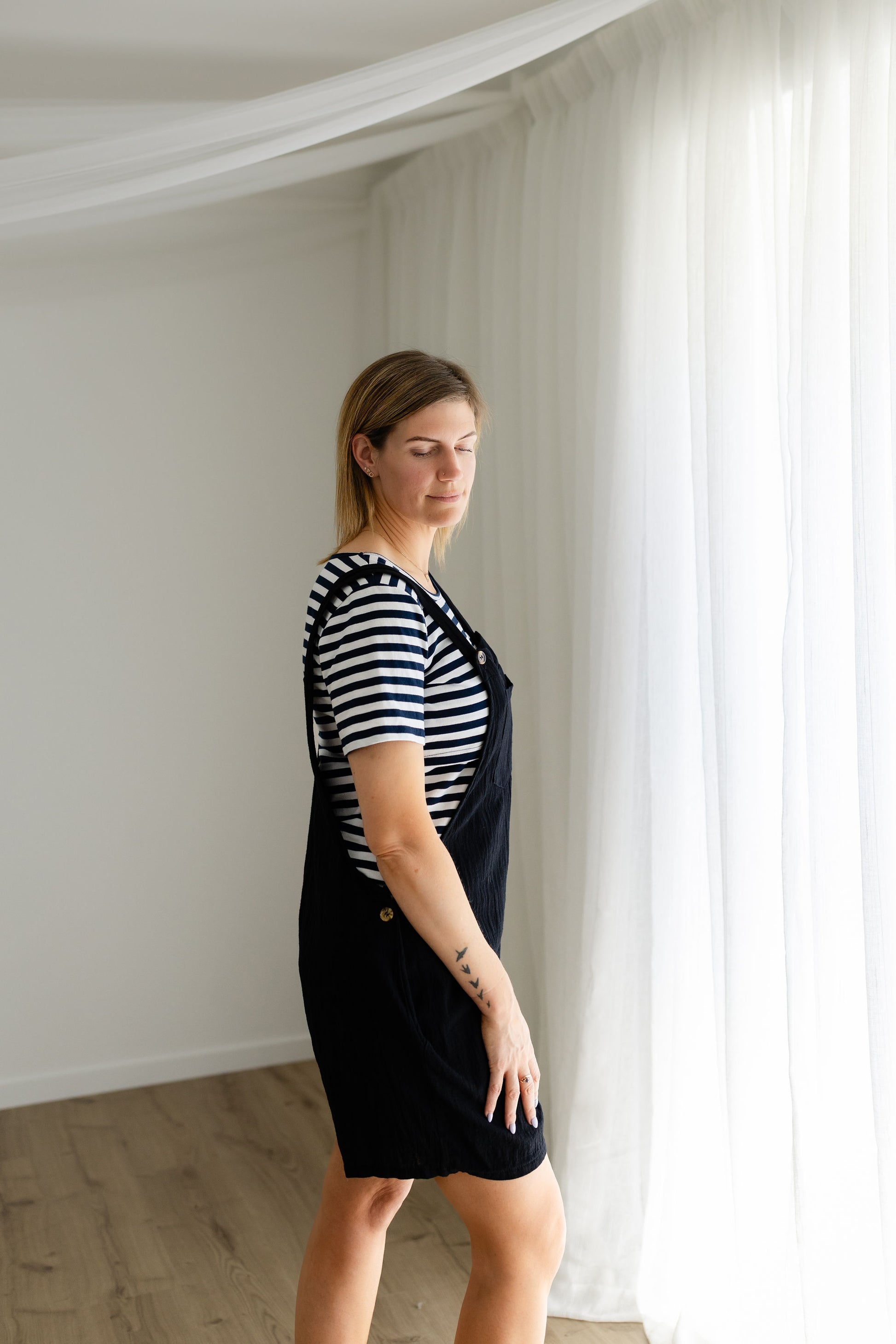 Comfortable enough for everyday wear yet nice enough to feel special, these short overalls are designed to be a long-standing favourite in your wardrobe for any stage of motherhood.